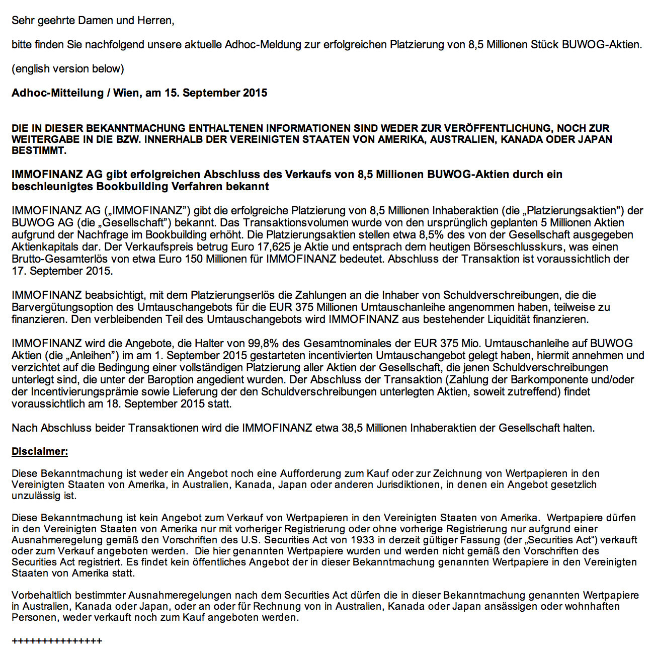 Die höchsten Tagesumsätze hatten Erste Group (31,93 Mio.), Buwog (29,01) und OMV (25,41). Umsatzausreisser nach oben gegenüber dem 2015er-Tagesschnitt gab es bei Buwog (429%), Zumtobel (146%) und Österreichische Post (127%).