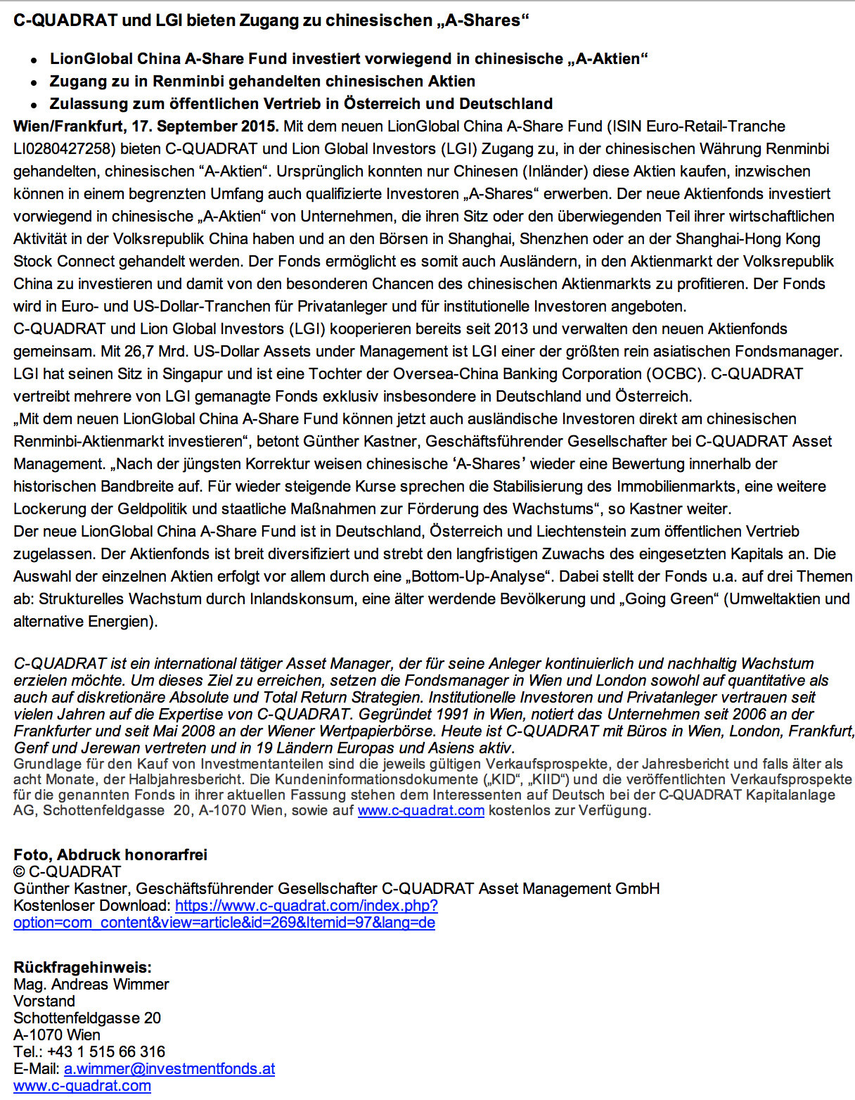 Folgende Veränderungen im ytd-Ranking: Aufsteiger des Tages war Uniqa (3 Plätze gutgemacht, von 16 auf 13) ; dazu, Telekom Austria(+2, von 14 auf 12), Lenzing (+1, von 4 auf 3), OMV (+1, von 10 auf 9), Flughafen Wien (+1, von 6 auf 5), Buwog (+1, von 7 auf 6), Conwert(-1, von 3 auf 4), Andritz (-1, von 15 auf 16), voestalpine (-1, von 9 auf 10), RBI (-2, von 13 auf 15),