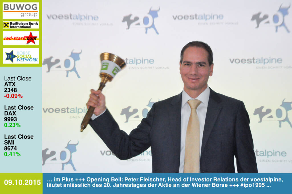 Gratulierend? Nun, die voestalpine feiert heute 20 Jahre an der Börse. Herzliche Gratulation. Wir haben ein Statement von CEO Eder, IR-Chef Fleischer war sogar zum Läuten der Opening Bell in Wien.