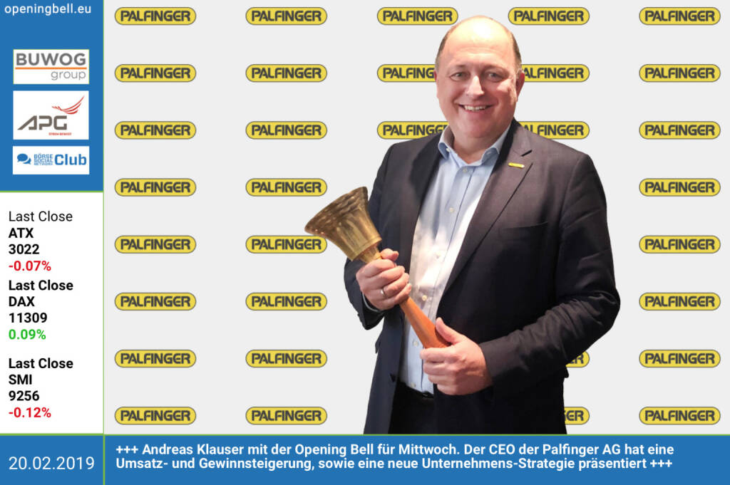 20.2.: Andreas Klauser mit der Opening Bell für Mittwoch. Der CEO der Palfinger AG hat eine Umsatz- und Gewinnsteigerung, sowie eine neue Unternehmens-Strategie präsentiert. http://palfinger.ag https://www.facebook.com/groups/GeldanlageNetwork