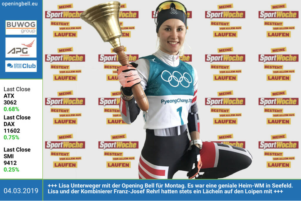 4.3.: Lisa Unterweger läutet die Opening Bell für Montag. Es war eine geniale Heim-WM in Seefeld. Lisa und der Nordische Kombinierer Franz-Josef Rehrl hatten stets ein Lächeln auf den Loipen mit https://www.facebook.com/search/top/?q=sportsblogged http://www.runplugged.com