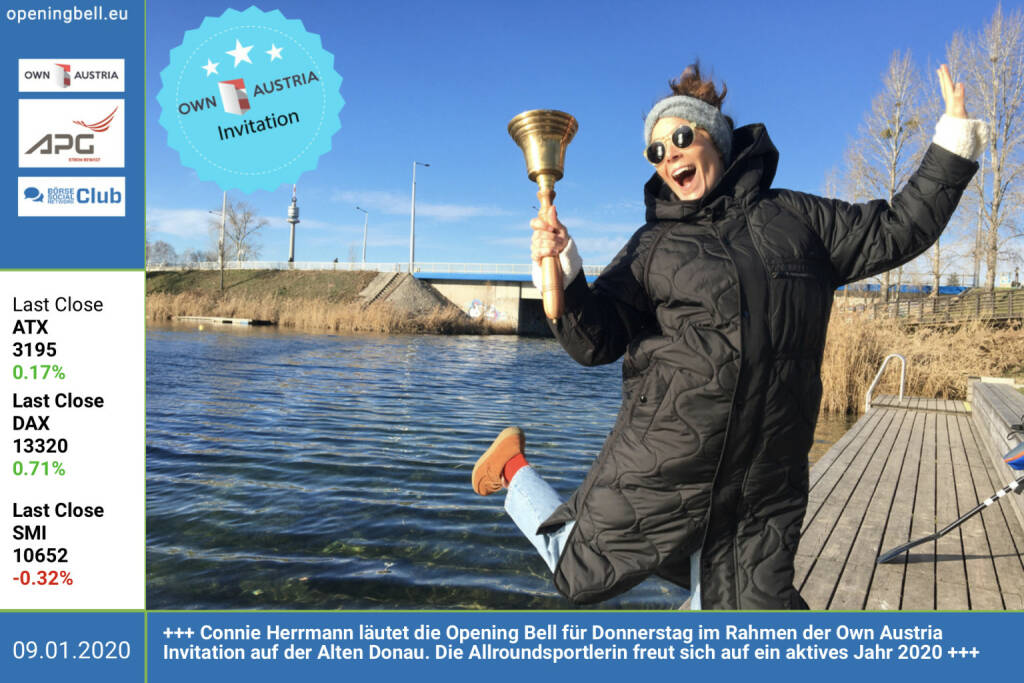 9.1.: Connie Herrmann läutet die Opening Bell für Donnerstag im Rahmen der Own Austria Invitation auf der Alten Donau. Die Allroundsportlerin freut sich auf ein aktives Jahr 2020 http:://www.ownaustria.at