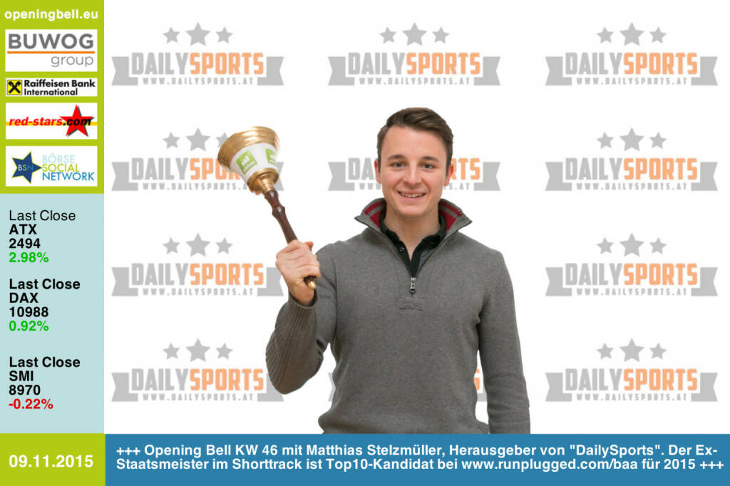 #openingbell am 9.11.: Opening Bell KW 46 mit Matthias Stelzmüller, Herausgeber von "DailySports". Der Ex-Staatsmeister im Shorttrack ist Top10-Kandidat bei www.runplugged.com/baa für 2015 http://www.dailysports.at http://www.openingbell.eu