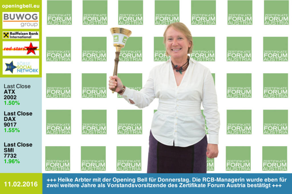 #openingbell am 11.2: Heike Arbter mit der Opening Bell für Donnerstag. Die RCB-Managerin wurde eben für zwei weitere Jahre als Vorstandsvorsitzende des Zertifikate Forum Austria bestätigt http://www.zertifikateforum.at http://www.rcb.at http://www.openingbell.eu