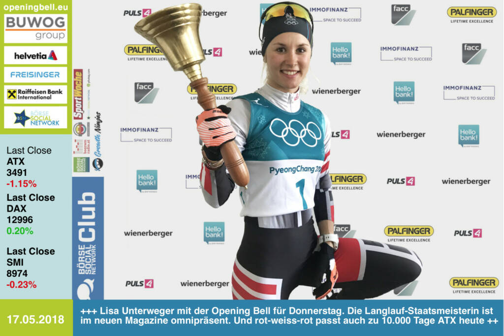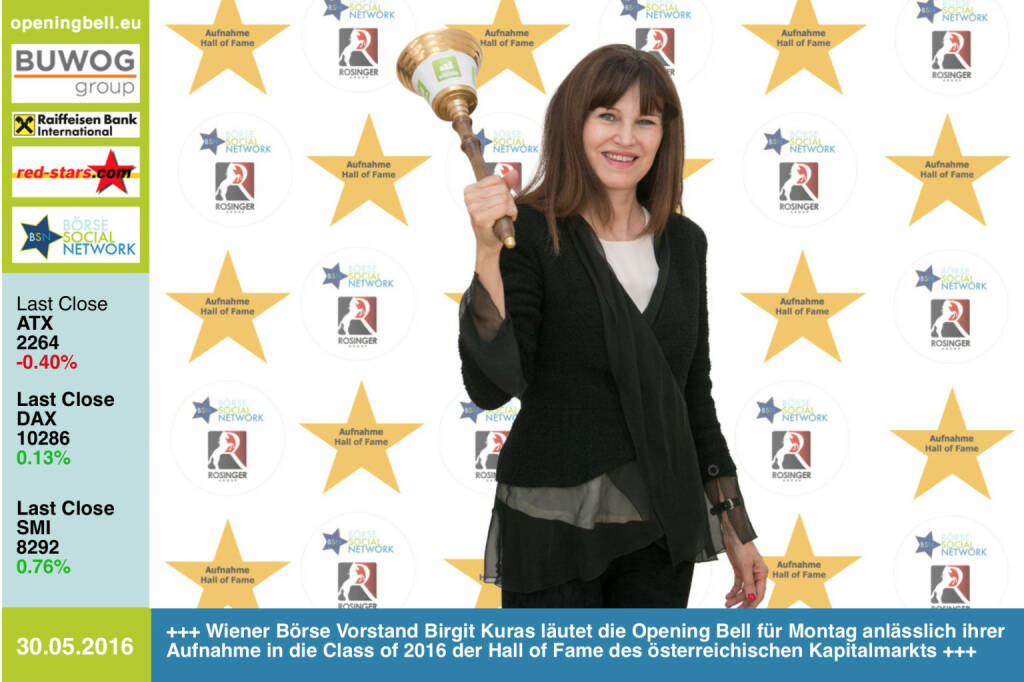 2.5.: Stefanie Huber läutet die Opening Bell für Donnerstag und damit für den Mai. Die Tochter von CEO Ernst Huber ist bei der Direktbank http://www.dad.at für Marketing und Partnergeschäft zuständig https://www.facebook.com/groups/GeldanlageNetwork