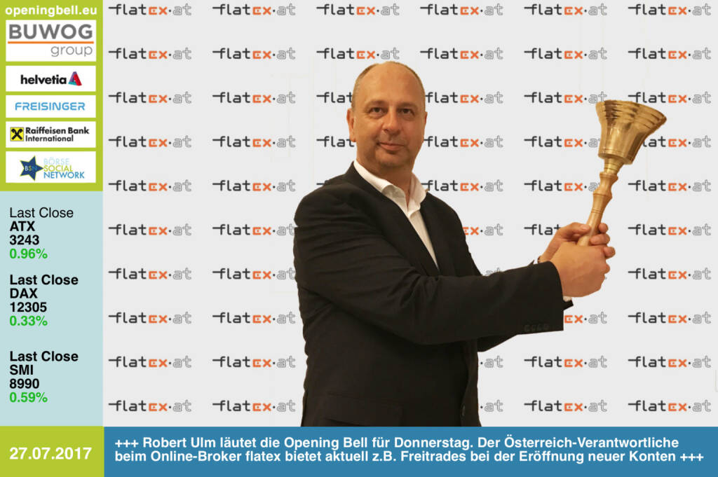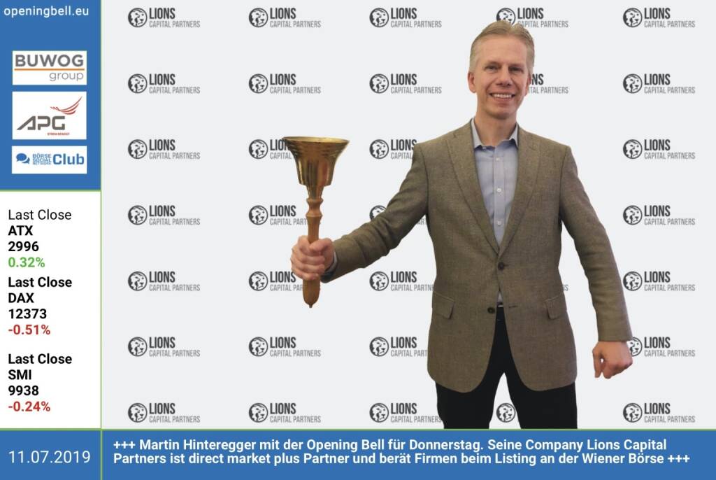 11.7.: Martin Hinteregger mit der Opening Bell für Donnerstag. Seine Company Lions Capital Partners ist direct market plus Partner und berät Firmen beim Listing an der Wiener Börse http://lionscapitalpartners.com https://www.facebook.com/groups/GeldanlageNetwork