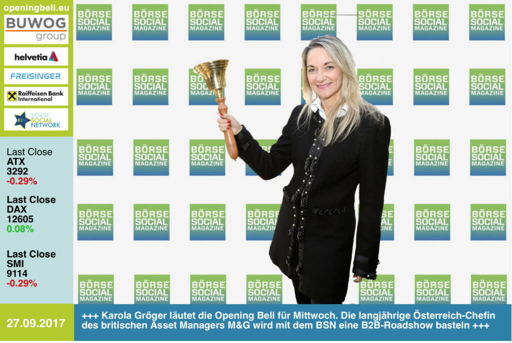 #openingbell am 27.11.: Doris Gstatter (IR & mehr) läutet die Opening Bell für Freitag. Und für professionelle Investor Relations – denn man kann bekanntlich nicht nicht kommunizieren http://www.gstatter.com http://www.openingbell.eu