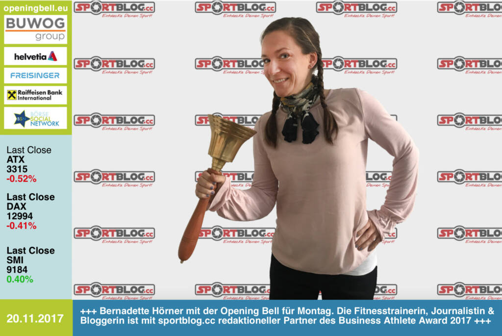 #openingbell am 19.11.: Elisabeth Niedereder, 26fache Lauf-Staatsmeisterin und Inhaberin Tristyle, läutet die Opening Bell für Donnerstag. Kalender 2016? Zu bestellen unter http://www.elisabethniedereder.com/kalender http://www.tristyle.at http://www.openingbell.eu