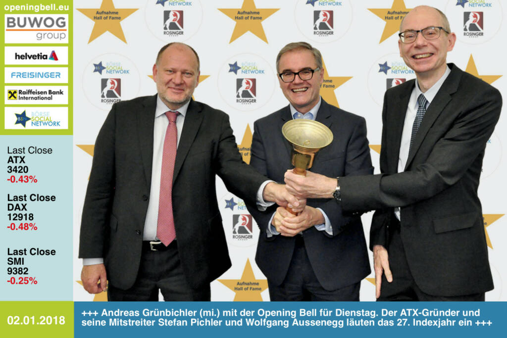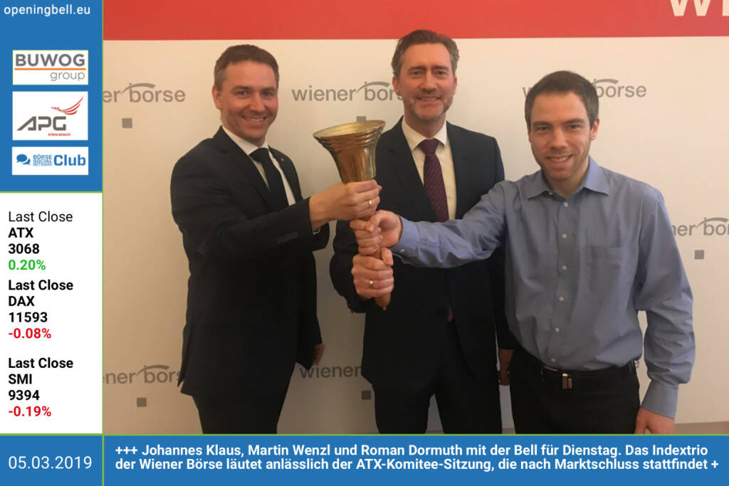 5.3.: Johannes Klaus, Martin Wenzl und Roman Dormuth mit der Opening Bell für Dienstag. Das Indextrio der Wiener Börse läutet anlässlich der ATX-Komitee-Sitzung, die heute nach Marktschluss stattfinden wird http://www.wienerborse.at https://www.facebook.com/groups/GeldanlageNetwork