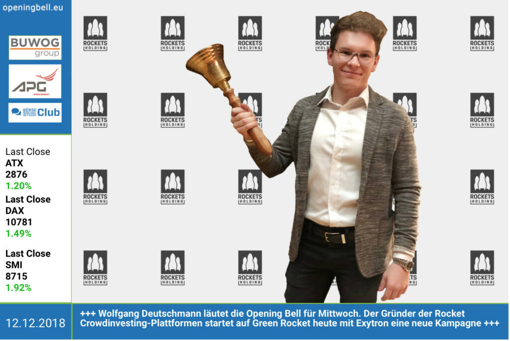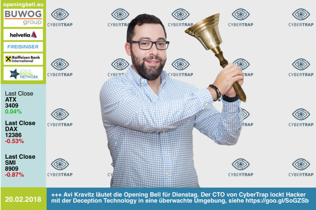 26.2.: Lukas Scherzenlehner läutet die Opening Bell für Dienstag. Am 18.März gibt er bei der Börse Social Network Roadshow #76 in Wien ein Update zu seiner seit 2017 gelisteten Cleen Energy http://www.cleen-energy.com https://www.facebook.com/groups/GeldanlageNetwork
