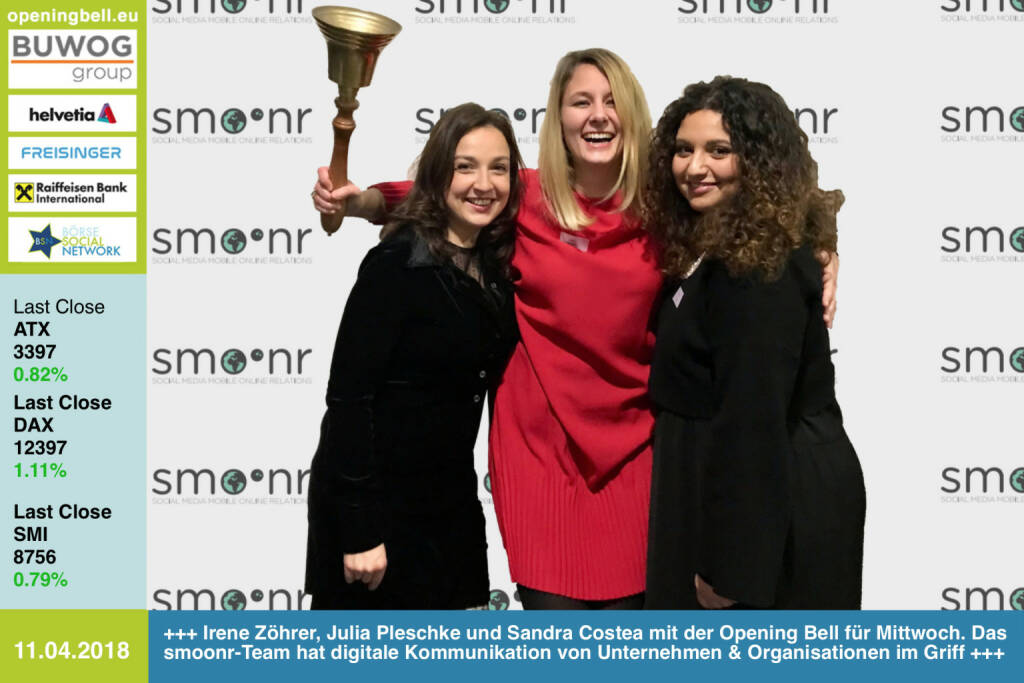 5.6.: Jennifer Gerstl, Cornelia Harlacher und Bernadette Höritzauer läuten die Opening Bell für Mittwoch. Das Drei-Frauen-Power-Team leitet Communications & Marketing bei der Porr http://porr-group.com https://www.facebook.com/groups/GeldanlageNetwork