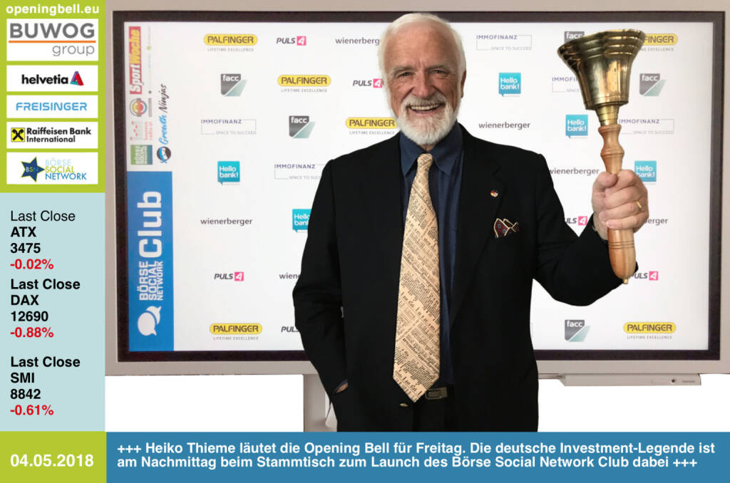 30.4.: Gerald König läutet die Opening Bell für Dienstag. Sein unabhängiges Geld- & Finanzportal http://www.geldmarie.at mit vielen Finanzvergleichen und Anlagetipps ist definitiv einen Besuch wert https://www.facebook.com/groups/GeldanlageNetwork