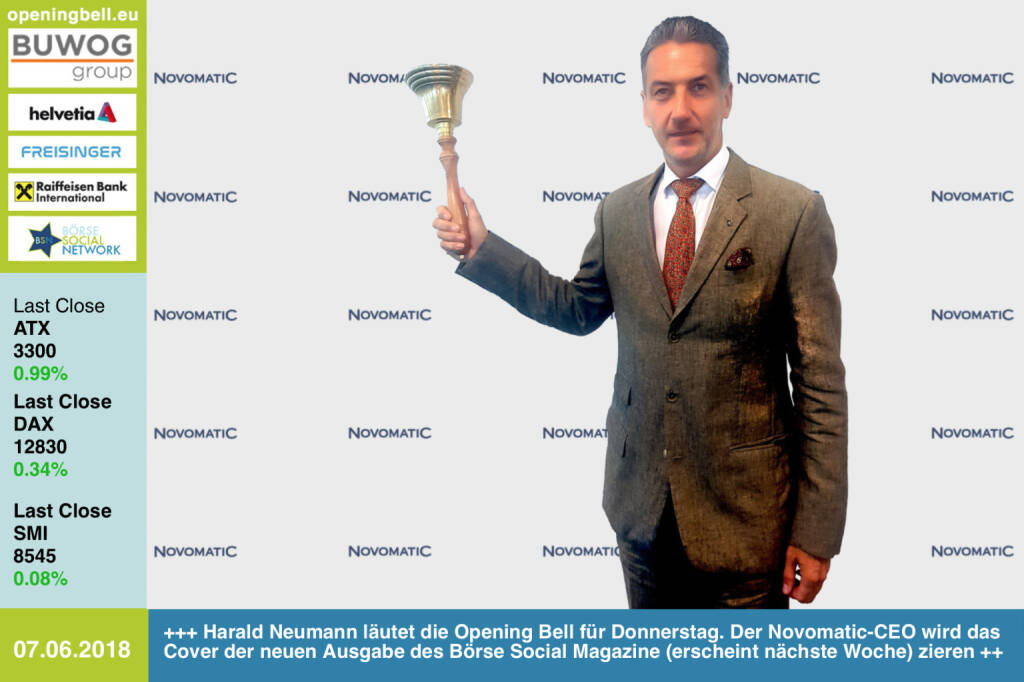 14.6.: Carolina Burger läutet die Opening Bell für Freitag. Die Kommunikatorin wechselte unlängst von der Uniqa zu Novomatic. Der Finanzblogger-Award Novomatic Smeil Alps 2019 startet Anfang Juli http://www.smeil-award.com http://www.novomatic.com