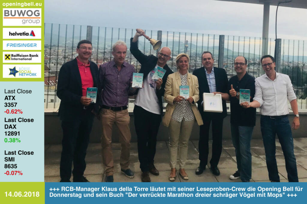 28.6.: Michael Wernbacher (Mitte) läutet mit dem Runplugged Team die Opening Bell für Freitag. Morgen, Samstag, startet in Wien sein Spektakel http://www.morningrun.at , die neue Startzeit ist pünktlich 6.15 Uhr https://www.facebook.com/search/top/?q=sportsblogged http://www.runplugged.com