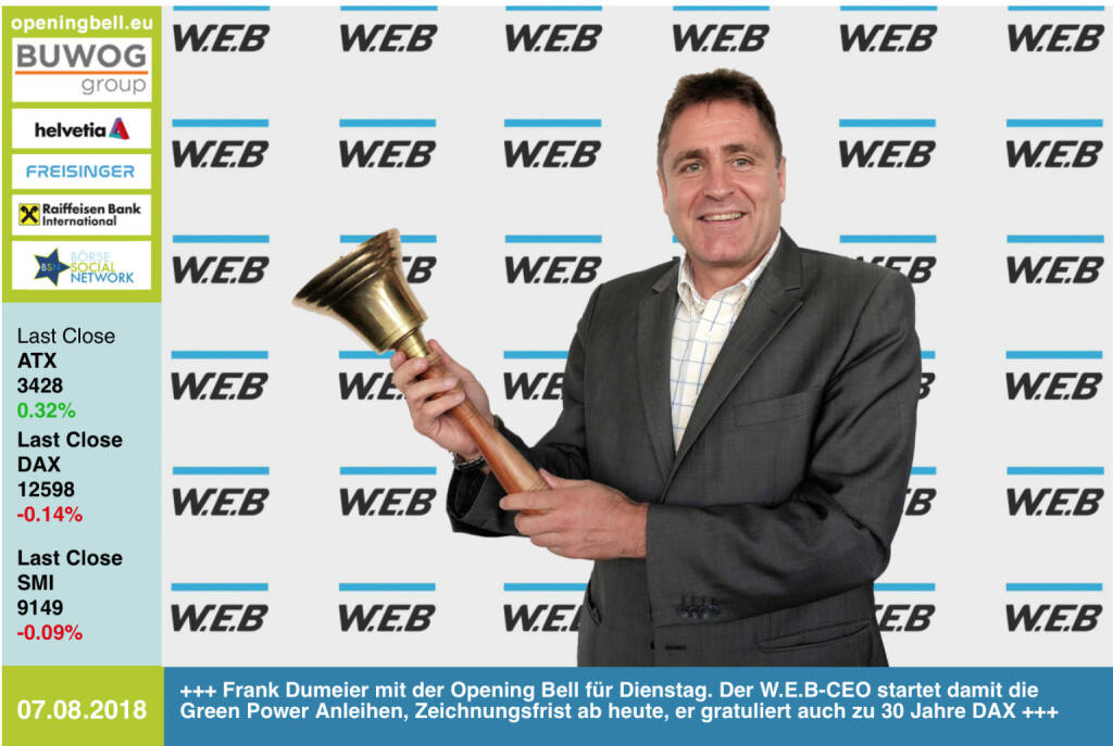 9.7.: Michael Richter läutet die Opening Bell für Dienstag. Seine Sonneninvest Gruppe bietet gerade die Möglichkeit, sich mittels Anleihe an der Sonneninvest Deutschland zu beteiligen https://www.sonneninvest.com https://www.facebook.com/groups/GeldanlageNetwork