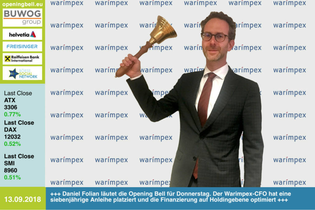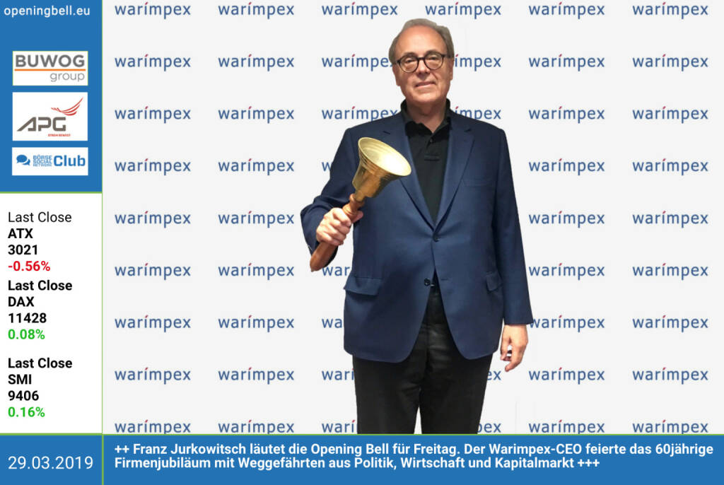 29.3.: Franz Jurkowitsch läutet die Opening Bell für Freitag. Der Warimpex-CEO feierte am Donnerstag das 60jährige Firmenjubiläum mit Weggefährten aus Politik, Wirtschaft und Kapitalmarkt. Wir gratulieren! http://warimpex.at https://www.facebook.com/groups/GeldanlageNetwork