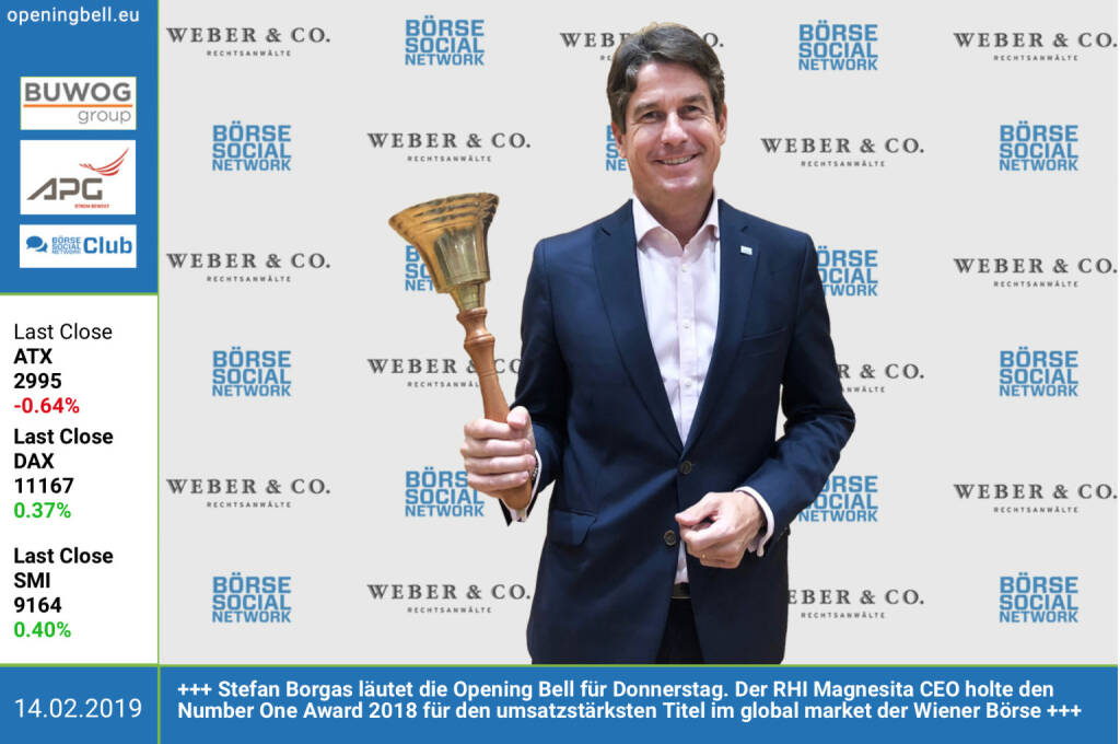 14.3.: Peter Kollmann läutet die Opening Bell für Donnerstag. Der Verbund-CFO nahm den Number One Award für 2018 entgegen: Bester Performer, grösstes Plus beim Handelsvolumen https://boerse-social.com/numberone/2018 https://www.verbund.com http://weber.co.at https://www.facebook.com/groups/GeldanlageNetwork