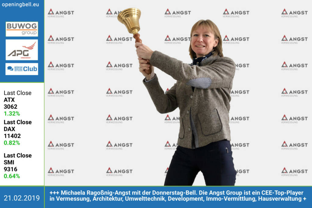 21.2.: Michaela Ragoßnig-Angst mit der Opening Bell für Donnerstag. Im mittel- und osteuropäischem Raum zählt die Angst Group zu den führenden Unternehmen im Bereich Vermessung, Architektur, Umwelttechnik, Projektentwicklung, Immobilienvermittlung und Hausverwaltung. Und das seit 1968. https://www.angstgroup.com/ https://www.facebook.com/AngstVermessung/ https://www.facebook.com/groups/GeldanlageNetwork