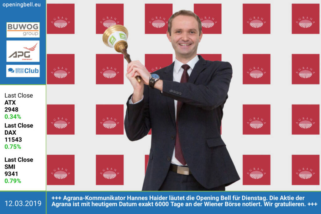 12.3.: Agrana-Kommunikator Hannes Haider läutet die Opening Bell für Dienstag. Die Aktie der Agrana ist mit heutigem Datum exakt 6000 Tage an der Wiener Börse notiert. Wir gratulieren https://www.agrana.com https://www.facebook.com/groups/GeldanlageNetwork