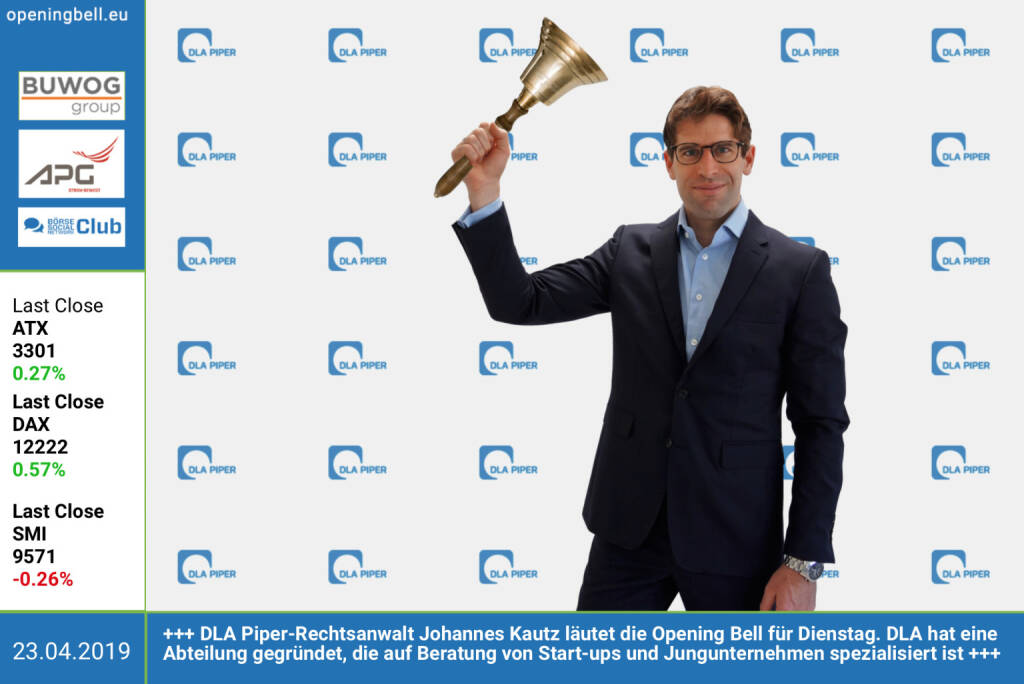 23.4.: DLA Piper-Rechtsanwalt Johannes Kautz läutet die Opening Bell für Dienstag. DLA Piper hat eine Abteilung gegründet, die auf Beratung von Start- ups und Jungunternehmen spezialisiert ist https://www.dlapiper.com/de/austria/locations/vienna/ https://www.facebook.com/groups/GeldanlageNetwork