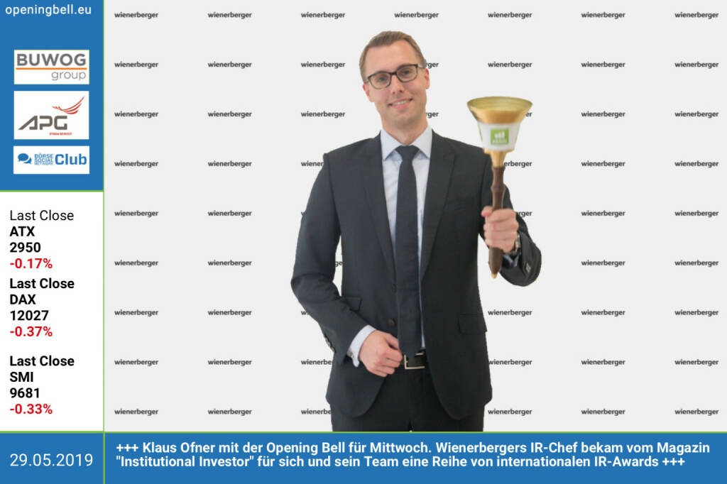 29.5.: Klaus Ofner mit der Opening Bell für Mittwoch. Wienerbergers IR-Chef bekam vom Magazin "Institutional Investor" für sich und sein Team eine Reihe von internationalen IR-Awards http://www. wienerberger.com https://www.facebook.com/groups/GeldanlageNetwork