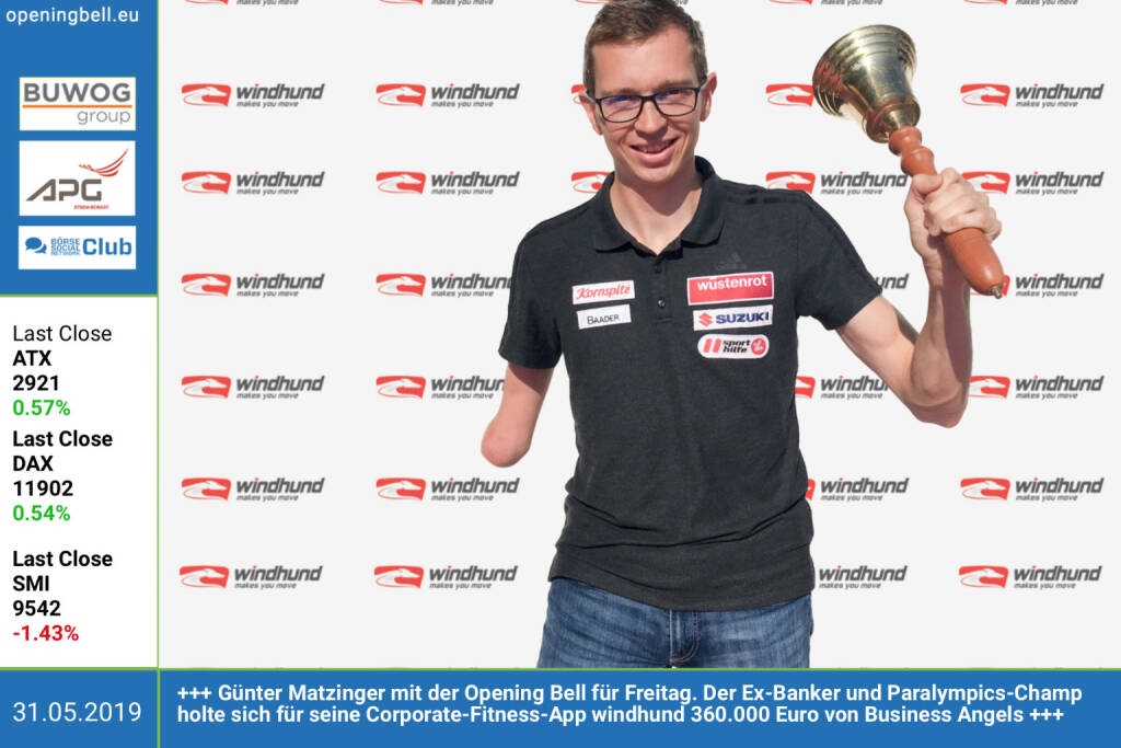 31.5.: Günther Matzinger läutet die Opening Bell für Freitag. Der Ex-Banker und Paralympics-Champ holte sich für seine Corporate-Fitness-App windhund 360.000 Euro von Business Angels. 2016 wurde Günther unser "Rookie of the year" beim Business Athlete Award, siehe https://photaq.com/page/pic/59083 . https://www.windhund.com/de/ https://www.facebook.com/groups/GeldanlageNetwork