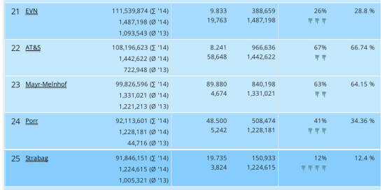 Handelsumsätze 2014: AT&S und Porr haben zum ATX-Wert Mayr-Melnhof aufgeschlossen. Siehe hier