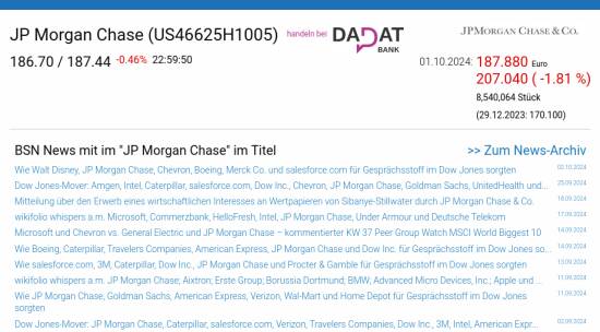 JP Morgan Chase am 1.10. -1,81%, Volumen 93% normaler Tage