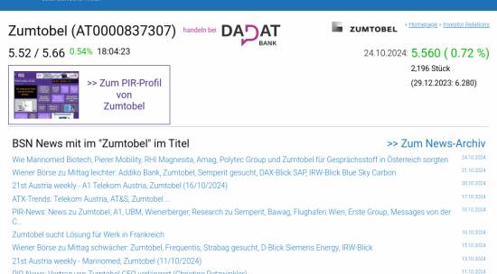 Zumtobel am 24.10. 0,72%, Volumen 16% normaler Tage