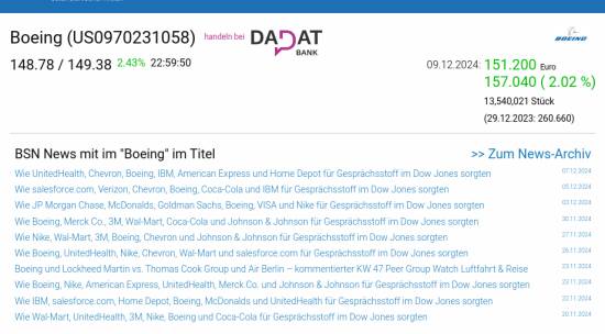 Boeing am 9.12. 2,02%, Volumen 147% normaler Tage