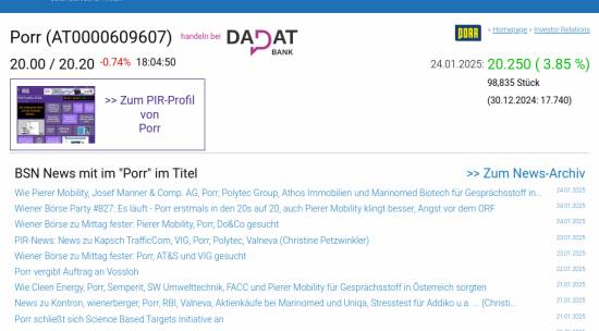 Porr am 24.1. 3,85%, Volumen 267% normaler Tage