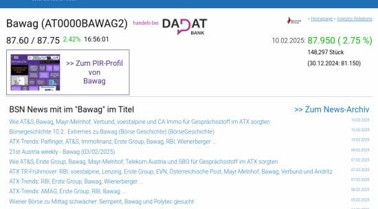 Bawag am 10.2. 2,75%, Volumen 123% normaler Tage