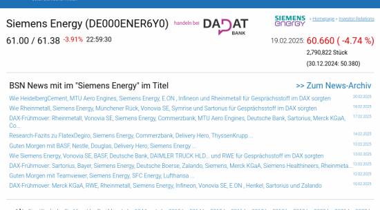 Siemens Energy am 19.2. -4,74%, Volumen 70% normaler Tage