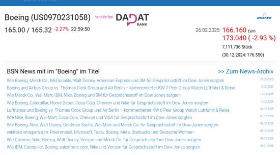 Boeing am 26.2. -2,93%, Volumen 91% normaler Tage