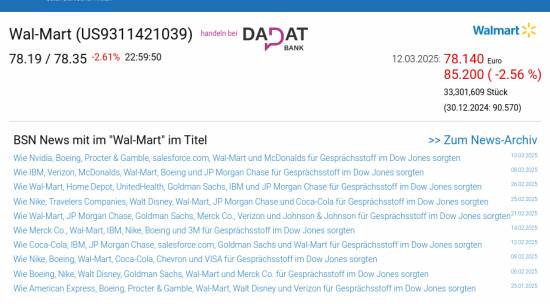 Wal-Mart am 12.3. -2,56%, Volumen 173% normaler Tage