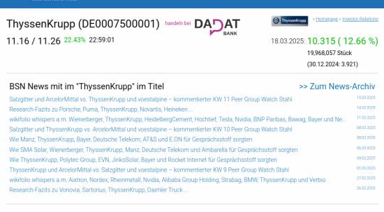 ThyssenKrupp am 18.3. 12,66%, Volumen 300% normaler Tage
