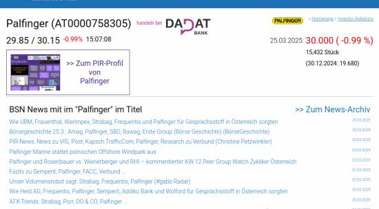 Palfinger am 25.3. -0,99%, Volumen 55% normaler Tage