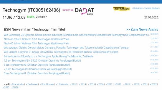 Technogym am 27.3. 7,23%, Volumen 0% normaler Tage