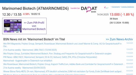 Marinomed Biotech am 14.4. -1,89%, Volumen 3% normaler Tage
