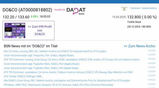 DO&CO am 15.4. 0,00%, Volumen 97% normaler Tage