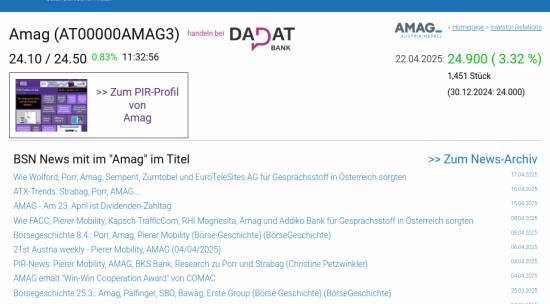 Amag am 22.4. 3,32%, Volumen 80% normaler Tage
