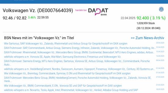 Volkswagen Vz. am 22.4. 3,19%, Volumen 75% normaler Tage
