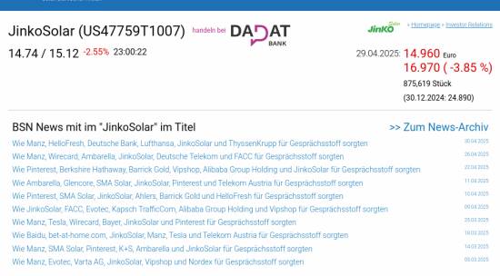 JinkoSolar am 29.4. -3,85%, Volumen 97% normaler Tage