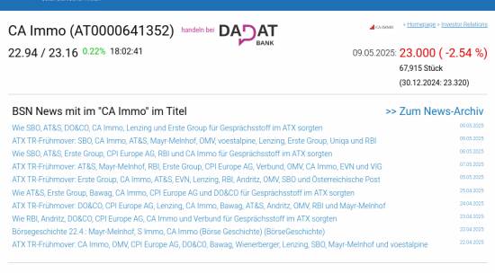 CA Immo am 9.5. -2,54%, Volumen 74% normaler Tage