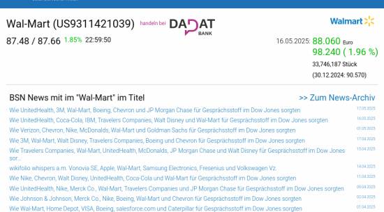 Wal-Mart am 16.5. 1,96%, Volumen 159% normaler Tage