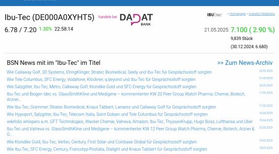 Ibu-Tec am 21.5. 2,90%, Volumen 157% normaler Tage