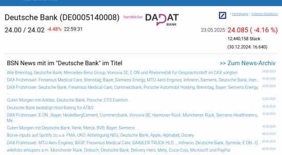 Deutsche Bank am 23.5. -4,16%, Volumen 134% normaler Tage