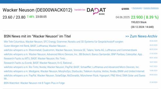 Wacker Neuson am 4.6. 8,39%, Volumen 306% normaler Tage