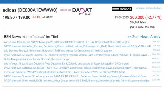adidas am 13.6. -2,77%, Volumen 136% normaler Tage
