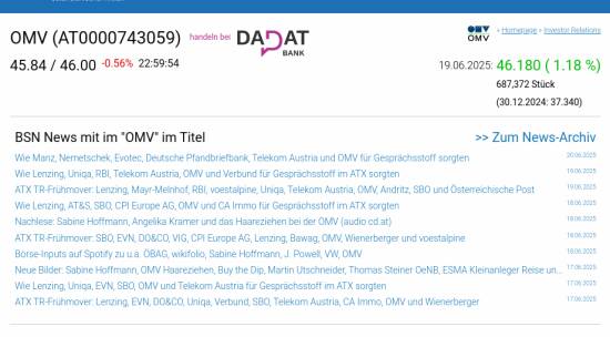 OMV am 19.6. 1,18%, Volumen 127% normaler Tage